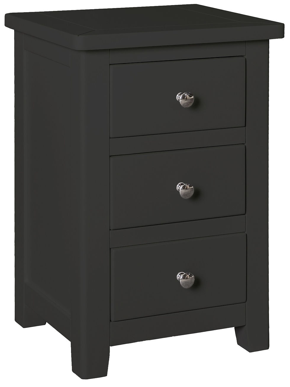 This collection offers a modern contemporary design with pine and man-made board carcass and a painted finish. This is then complimented with Chrome look hinges and round knobs .