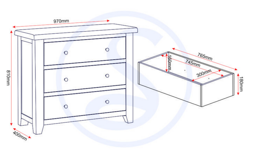 William Pebble 3 drawer chest